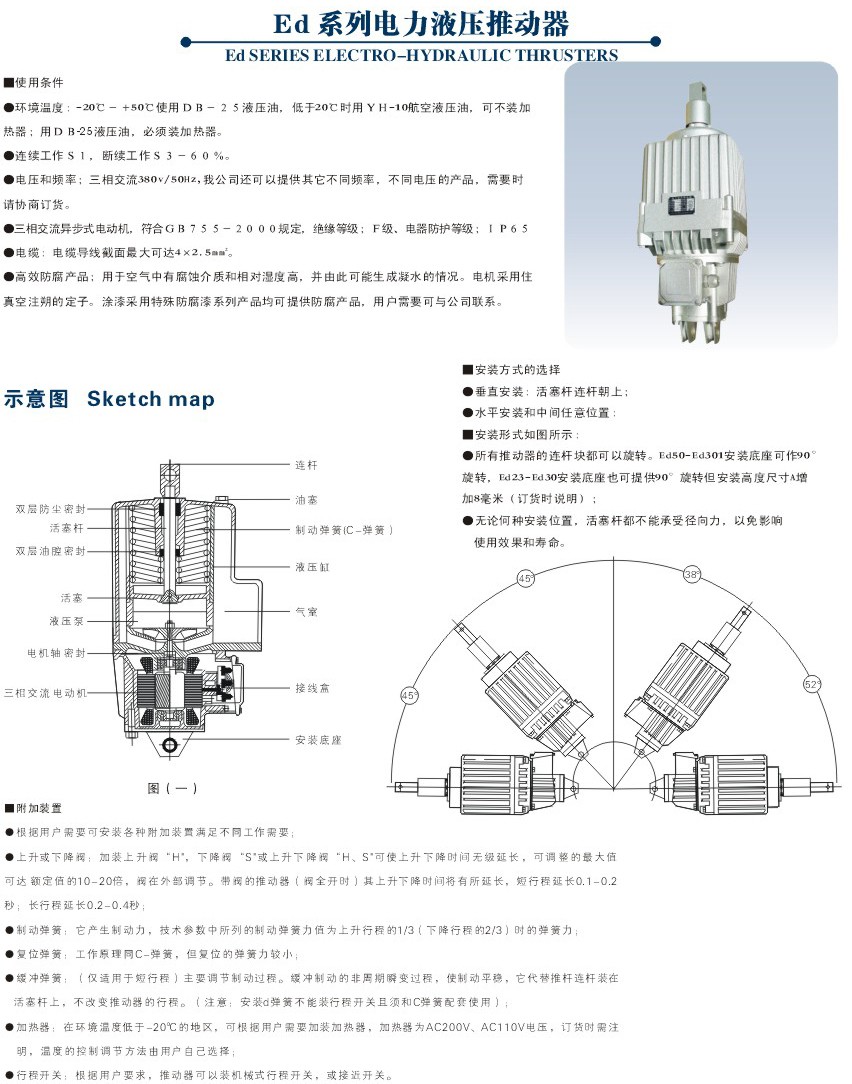 ED系列電力液壓推動(dòng)器,適用于YWZ4,YWZ5,YWZ9等電力液壓制動(dòng)器的工作驅動(dòng)。